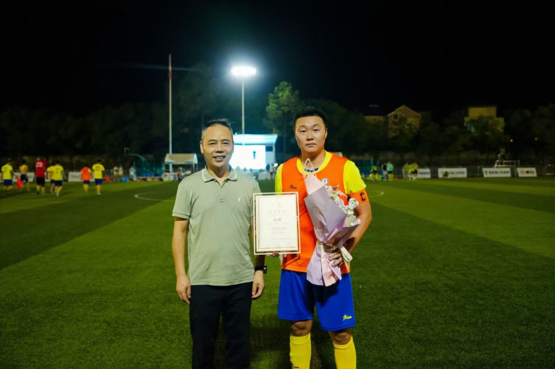 上半场,瓶窑队占据场上主动,向对方腹地发起猛攻。在一次精妙的进攻配合中,7号球员陈海峰接球后果断起脚射门,足球划出精准弧线直窜远角,守门员鞭长莫及。比分来到1:0。